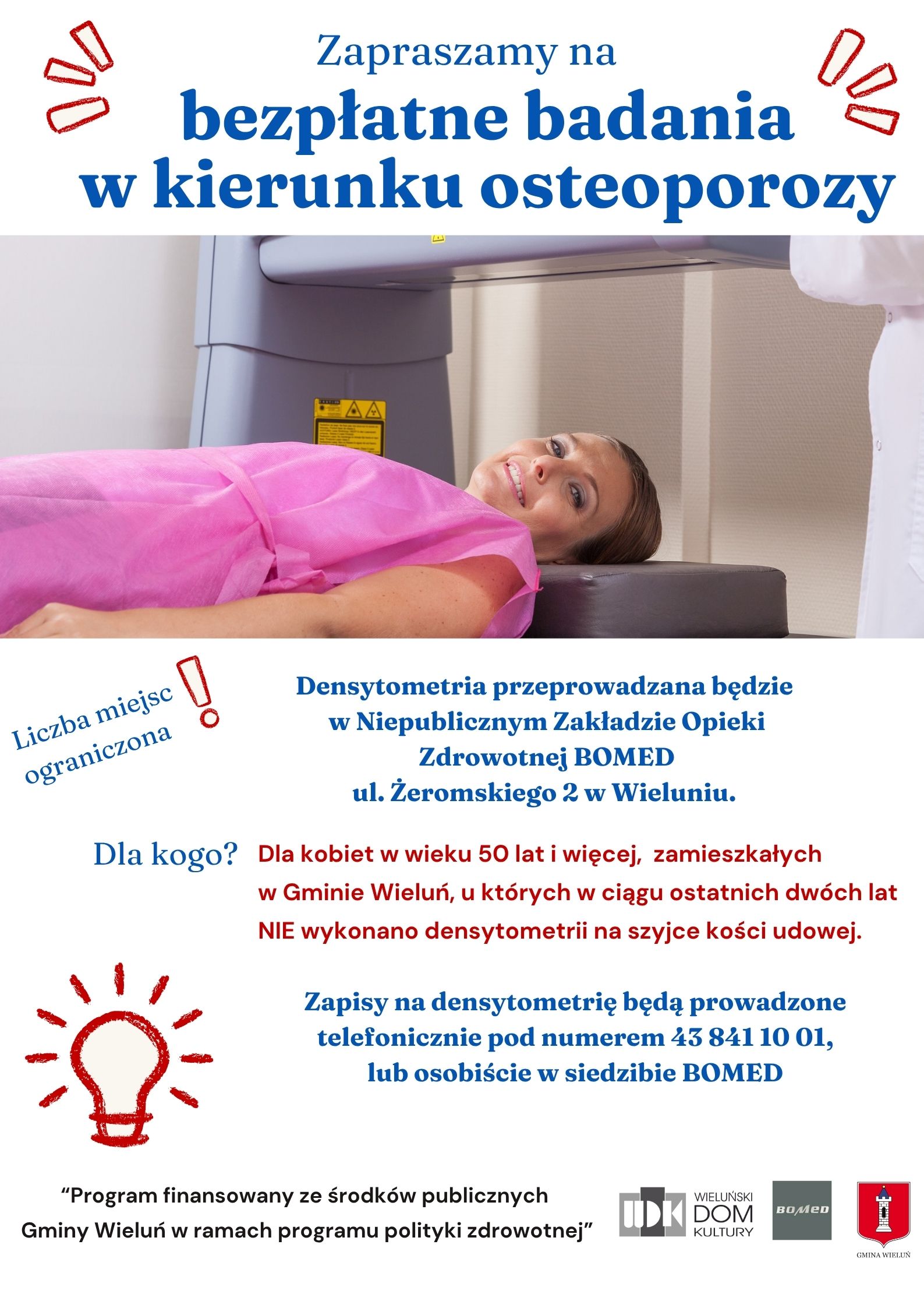 Czytaj więcejZAWIADOMIENIE O WYBORZE OFERTY Zamawiający –Wieluński Dom Kultury na podstawie zał. nr 1 i 2 do Zarządzenia Nr 4/2026 Dyrektora Wieluńskiego Domu Kultury w Wieluniu z dnia 10 lutego 2026 roku w sprawie ogłoszenia otwartego konkursu ofert na wybór w 2026 r. realizatora programu polityki zdrowotnej pn.: „Profilaktyka i wczesne wykrywanie osteoporozy wśród kobiet w wieku...