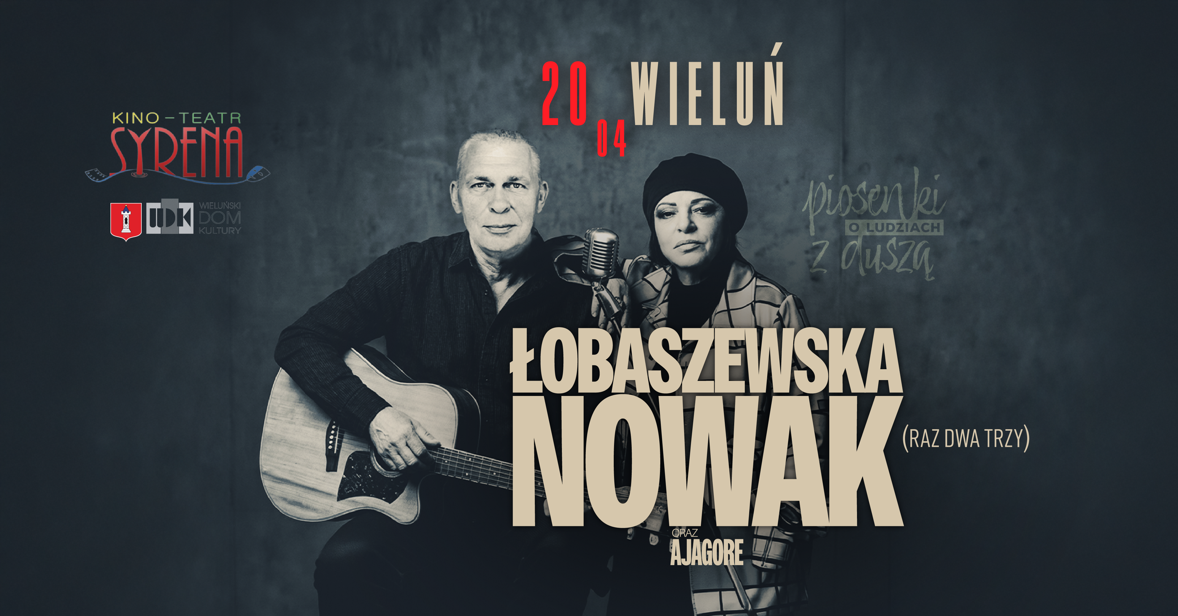 Zapraszamy na koncert duetu wyjątkowych Artystów, dla których słowo jest równie ważne, co muzyka. Ich największe przeboje oraz te mniej znane, ale ukochane utwory. W pięknych - nowych - aranżacjach, przygotowanych i wykonywanych wspólnie z przyjaciółmi z zespołu Ajagore. Kino-Teatr Syrena 20.04.2026 godz.19.00 Bilety w cenie 140zł normalny/ 130zł ulgowy dostępne będą w kasie kina oraz na stronie...