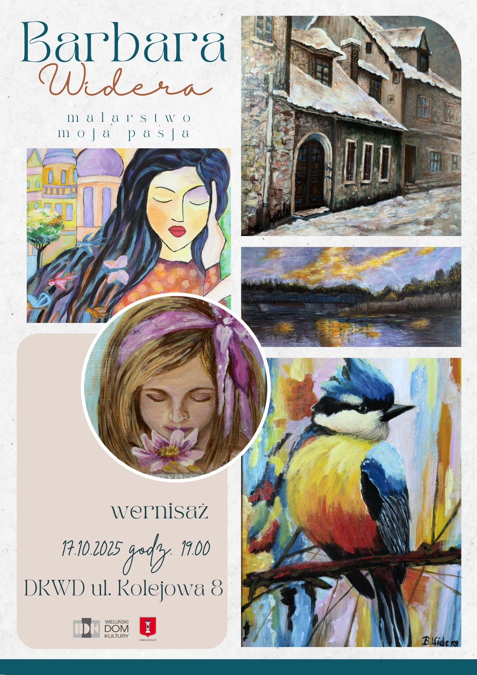 Serdecznie zapraszamy na wernisaż Barbary Widery "Malarstwo-moja pasja". 17.10.2025 ( piątek) godz. 19.00 Dworzec Kulturalny Wieluń-Dąbrowa. Pani Barbara jest aktywną uczestniczką zajęć rękodzieła „Aktywne perełki”. 15 osobowa grupa wszechstronnie utalentowanych artystek...