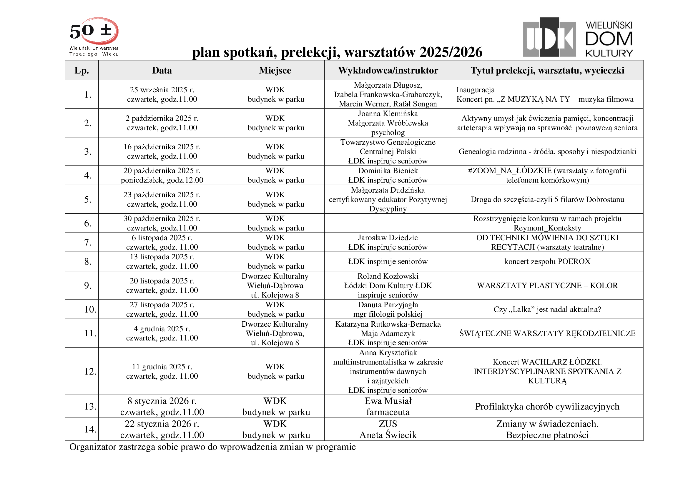 Czytaj więcejWieluński Dom Kultury zaprasza na wyjątkowy koncert Jarosława Chojnackiego!Spotkajmy się 7 listopada 2025 r. (piątek) o godz. 19:00 w Dworcu Kulturalnym Wieluń Dąbrowa, ul. Kolejowa 8.Bezpłatne wejściówki czekają w sekretariacie WDK (ul. Krakowskie Przedmieście 5).Nie przegap tego wieczoru pełnego emocji, muzyki i refleksji! Jarosław Chojnacki swoją działalność artystyczną rozpoczął na przełomie lat osiemdziesiątych i dziewięćdziesiątych ubiegłego...