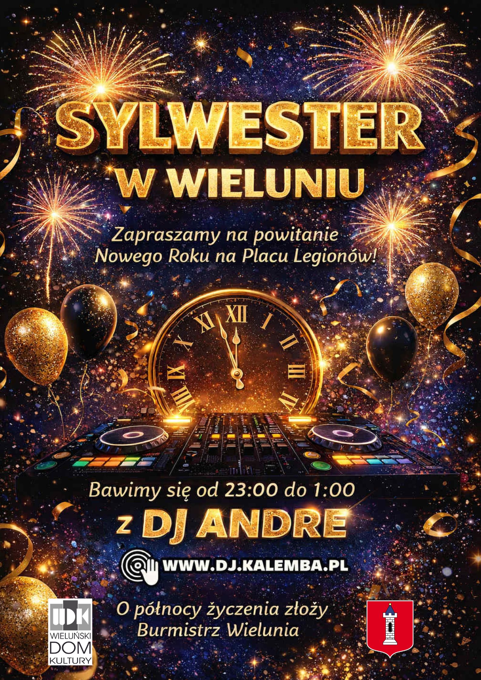 Czekają na Was świetna muzyka, wyjątkowa atmosfera i wspólne odliczanie do Nowego Roku wraz z Burmistrzem Wielunia Pawłem Okrasą.
