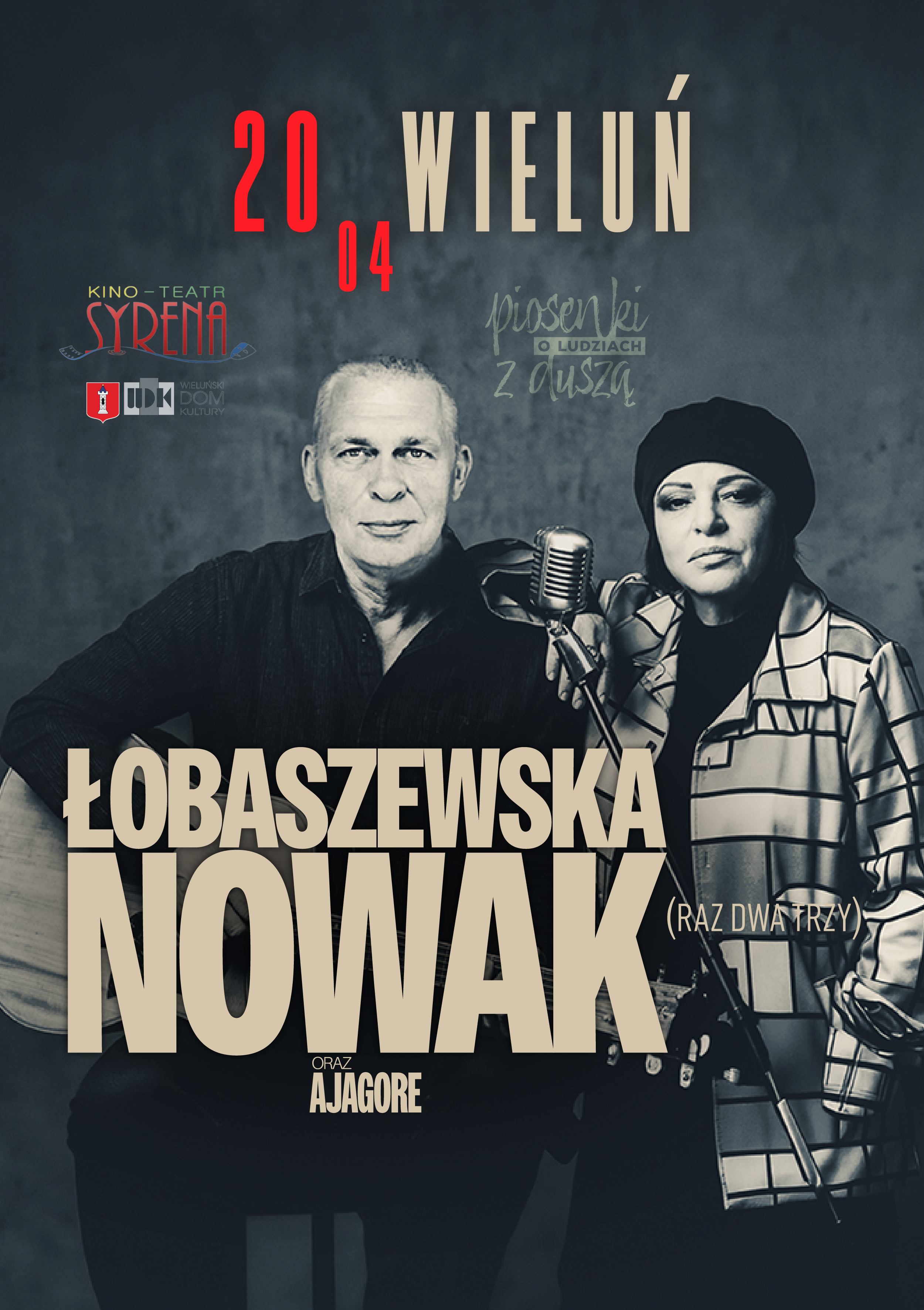 To będzie słowno-muzyczny wieczór o ważnych dla nas emocjach, o tak różnej dla każdego z nas codzienności, o zachwytach, drobiazgach i rzeczach naprawdę istotnych w życiu. Mądre i dobre słowa spotkają się w tym koncercie z doskonałą muzyką. Zachwycą, wzruszą... podarują nam piosenki... po prostu piosenki o nas, o ludziach z duszą. Grażyna Łobaszewska - legenda polskiej sceny. Dla wielu Pierwsza Dama Polskiej Piosenki. Nazywana najczarniejszą z białych wokalistek, polską Arethą Franklin czy współczesną Billie Holiday. Oszałamiający głos, niepowtarzalna melodyka i absolutna charyzma. Od ponad 50 lat na scenie i wciąż - coraz lepsza. "Czas nas uczy pogody", "Brzydcy", "Gdybyś', czy "Za szybą (całkiem spokojnie wypiję trzecią kawę)" to tylko niektóre z Jej ponadczasowych przebojów. Aktualnie pracuje nad nową płytą. Adam Nowak - poeta, autor tekstów, kompozytor, gitarzysta i wokalista. Założyciel i lider zespołu Raz Dwa Trzy. Na scenie - zawsze na najwyższym poziomie - od ponad 40 lat. Postrzegany przez wielu jako polski Bob Dylan, Nick Cave czy Tom Waits - sam jednak nie lubi takich porównań. Jak mówi Anna Dymna: "Adam to nie tylko wspaniały artysta, lecz przede wszystkim niezwykle życzliwy, uśmiechnięty, sympatyczny kolega, taki prawdziwy człowiek, przy którym dobrze wszyscy się czują. Ma znakomity kontakt z publicznością". Wyjątkowy Artysta z wielkim talentem, ogromnym sercem i niezwykle rzadką wrażliwością na otaczającą nas codzienność. Ajagore - zespół przyjaciół z Kociewia, zakotwiczony w Tczewie. Formacja z nurtu jam band, silnie zakorzeniona w folku, rocku i jazzie. Liderem zespołu jest Maciej Kortas - doskonały gitarzysta z wybitną wyobraźnią muzyczną i fantastycznym warsztatem. Partnerują mu: Paweł Urowski (świetny basista i kontrabasista), Łukasz Łapiński (wirtuoz instrumentów perkusyjnych) oraz Łukasz Sasko, gitarzysta i - a może przede wszystkim - genialny realizator dźwięku i akustyk, przepięknie słyszący i widzący dźwięki zespołu.
